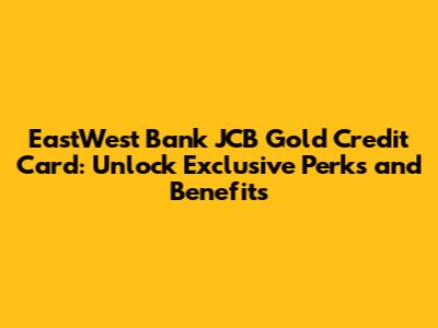 Hey guys! Looking for a credit card that gives you access to awesome rewards, exclusive deals, and a touch of gold-class service? Then you might want to check out the EastWest Bank JCB Gold Credit Card. This card is designed for savvy spenders who want to maximize their purchases and enjoy a range of benefits both locally and internationally. In this article, we'll dive deep into what makes this card special, its key features, and how you can apply. So, buckle up and let’s get started!
