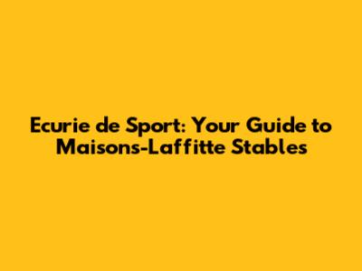 Ecurie De Sport: Your Guide To Maisons-Laffitte Stables