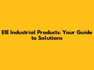 EIE Industrial Products: Your Guide To Solutions
