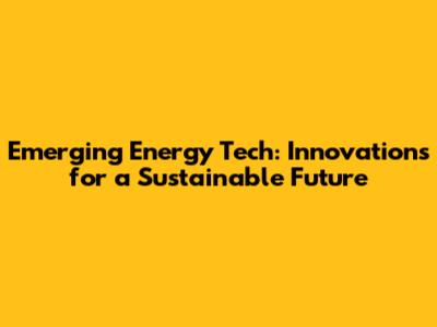 Emerging Energy Tech: Innovations For A Sustainable Future