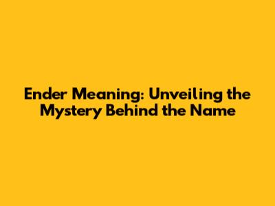 Ender Meaning: Unveiling The Mystery Behind The Name