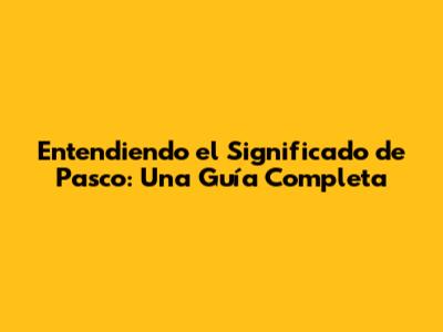 Entendiendo El Significado De Pasco: Una Guía Completa