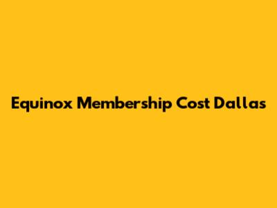 Equinox Dallas Membership Costs: The Breakdown