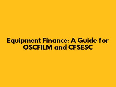 Equipment Finance: A Guide For OSCFILM And CFSESC