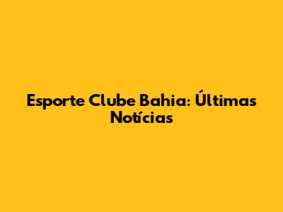 Esporte Clube Bahia: Últimas Notícias