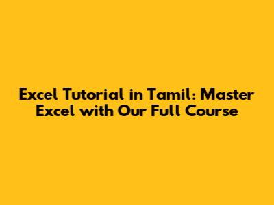 Excel Tutorial In Tamil: Master Excel With Our Full Course