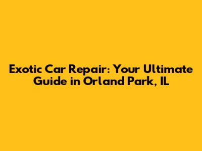 Exotic Car Repair: Your Guide In Orland Park, IL