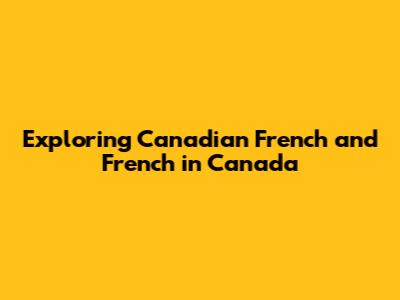 Exploring Canadian French And French In Canada
