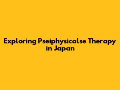 Exploring Pseiphysicalse Therapy In Japan