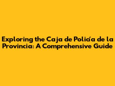 Exploring The Caja De Policía De La Provincia: A Comprehensive Guide