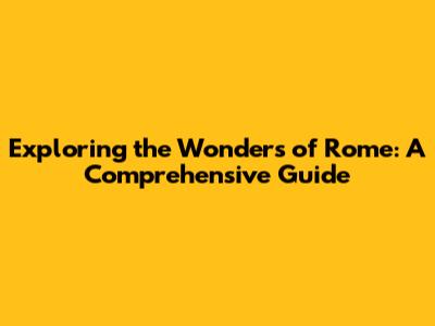 Exploring The Wonders Of Rome: A Comprehensive Guide