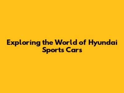 Exploring The World Of Hyundai Sports Cars