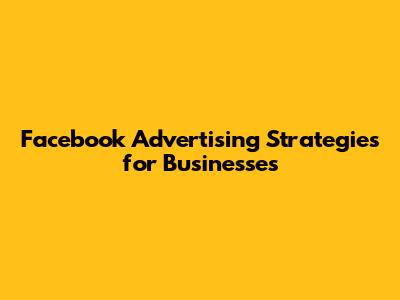 Facebook Advertising Strategies For Businesses