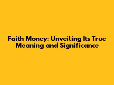Faith Money: Unveiling Its True Meaning And Significance