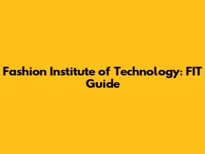 Fashion Institute Of Technology: FIT Guide