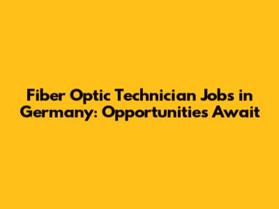 Fiber Optic Technician Jobs In Germany: Opportunities Await