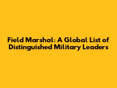 Field Marshal: A Global List Of Distinguished Military Leaders