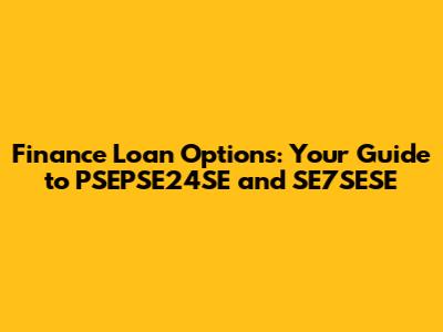 Finance Loan Options: Your Guide To PSEPSE24SE And SE7SESE
