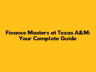 Finance Masters At Texas A&M: Your Complete Guide