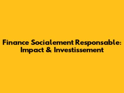 Finance Socialement Responsable: Impact & Investissement