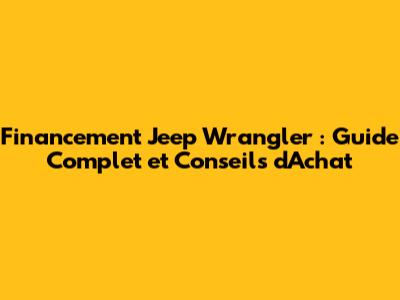 Financement Jeep Wrangler : Guide Complet Et Conseils D'Achat