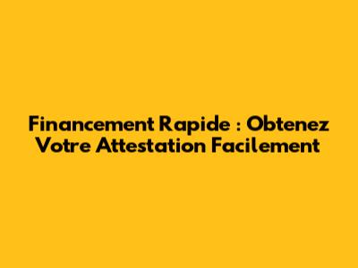 Financement Rapide : Obtenez Votre Attestation Facilement