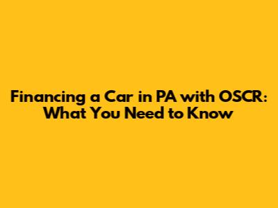 Financing A Car In PA With OSCR: What You Need To Know