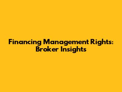 Financing Management Rights: Broker Insights