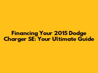 Financing Your 2015 Dodge Charger SE: A Comprehensive Guide