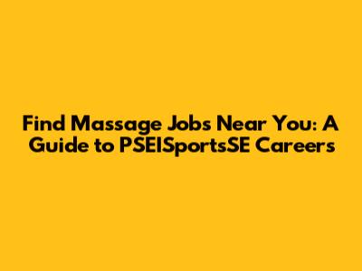Find Massage Jobs Near You: A Guide To PSEISportsSE Careers