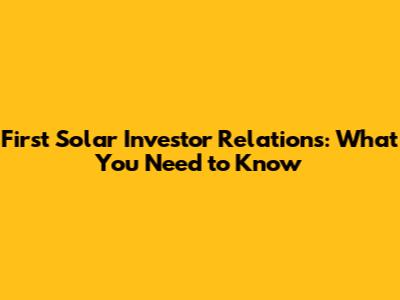 First Solar Investor Relations: What You Need To Know