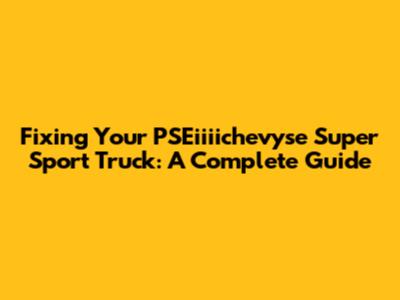 Fixing Your PSEiiiichevyse Super Sport Truck: A Complete Guide