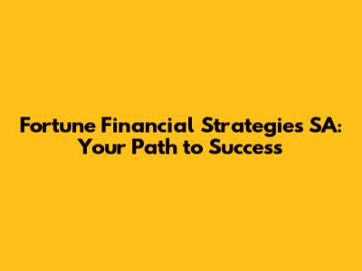 Fortune Financial Strategies: Your Path To Success In SA