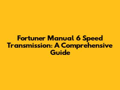 Fortuner Manual 6 Speed: A Comprehensive Guide