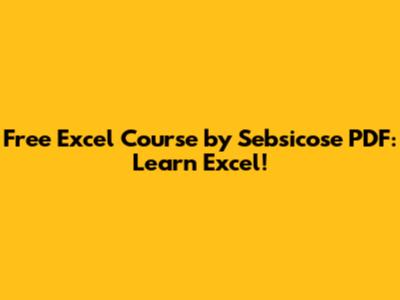 Free Excel Course By Sebsicose PDF: Learn Excel!