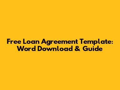 Free Loan Agreement Template: Word Download & Guide