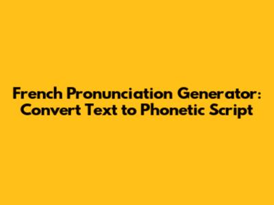 French Pronunciation Generator: Convert Text To Phonetic Script