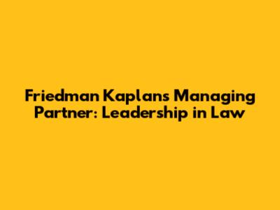 Friedman Kaplan's Managing Partner: Leadership In Law