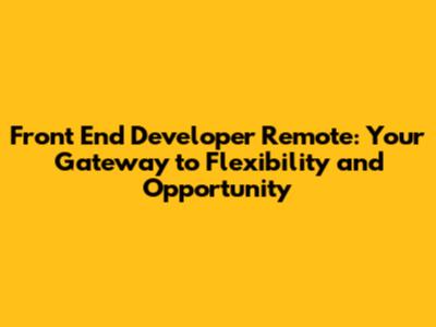 Front End Developer Remote: Your Dream Job Awaits!