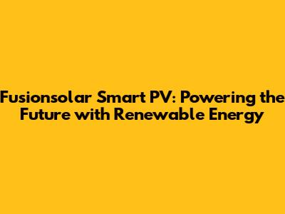 Fusionsolar Smart PV: Powering The Future With Renewable Energy