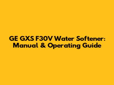 GE GXS F30V Water Softener Manual & Guide