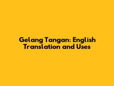 Gelang Tangan: English Translation And Uses
