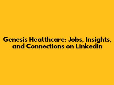 Genesis Healthcare: Jobs, Insights, And Connections On LinkedIn