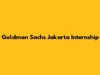 Goldman Sachs Internship: Jakarta Opportunities