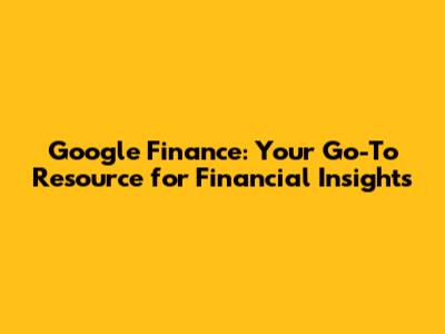 Google Finance: Your Go-To Resource For Financial Insights