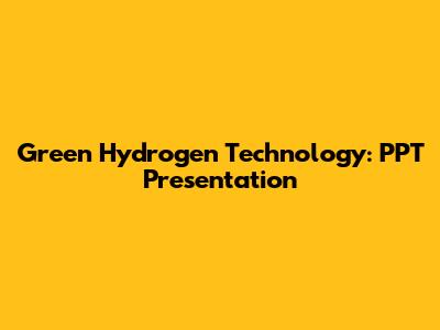 Green Hydrogen Technology: PPT Presentation