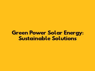 Green Power Solar Energy: Sustainable Solutions