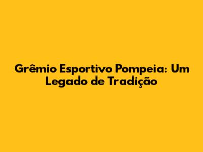E aí, galera apaixonada por futebol! Hoje a gente vai bater um papo sobre um clube que respira história e tradição no cenário esportivo: o Grêmio Esportivo Pompeia. Se você curte um bom futebol e quer saber mais sobre um time com raízes profundas e uma trajetória marcante, cola comigo que a gente vai desbravar juntos o universo desse clube sensacional. Preparem a pipoca e o coração, porque a história do Grêmio Esportivo Pompeia é de arrepiar!