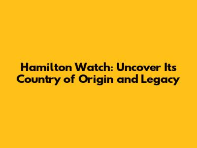 Hamilton Watch: Uncover Its Country Of Origin And Legacy