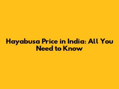 Hayabusa Price In India: All You Need To Know